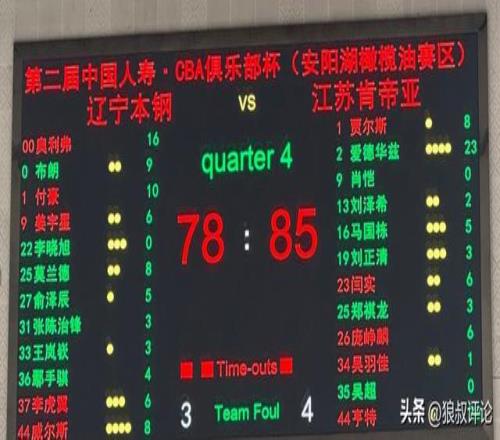 全场比赛,辽宁男篮以78-85不敌江苏男篮,成为CBA俱乐部杯最大冷门。