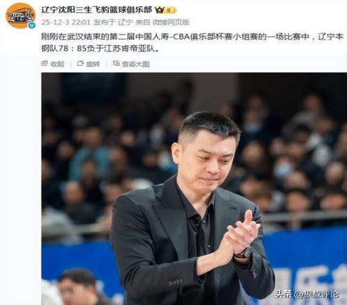 赛后,辽宁男篮官方社媒发文:“刚刚在武汉结束的第二届中国人寿-CBA俱乐部杯赛小组赛的一场比赛中,辽宁本钢队78:85负于江苏肯帝亚队。 ”