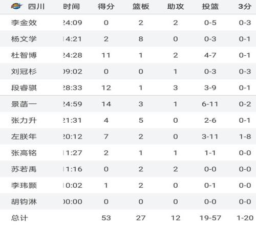 CBA常规赛,同曦vs四川,这场比赛打的可谓相当难看,四川队首节上来就11:28落后17分,全队打的毫无章法,甚至后卫运球过半场后,多次被生断,最终球队以53:84狂输31分之多。这场比赛,四川男篮被南京同曦全场压制,多名球员3中0,甚至5中0,而更让人无语的是,全队三分20中1,命中率仅为5%,这不仅让人感叹,这哪像职业球员啊!